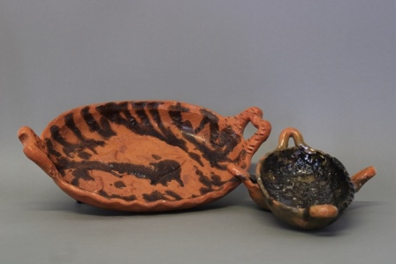 Entre estas piezas de colección están tres pescaderas de diferentes tamaños, que se utilizaban para una exhibición estética de los alimentos en la mesa —conservas de calabaza, duraznos, tejocotes; chiles poblanos rellenos de queso, manchamanteles o pescado tenso (seco y salado)—, así como dos ollas y una jarra para conservar el agua más fresca.