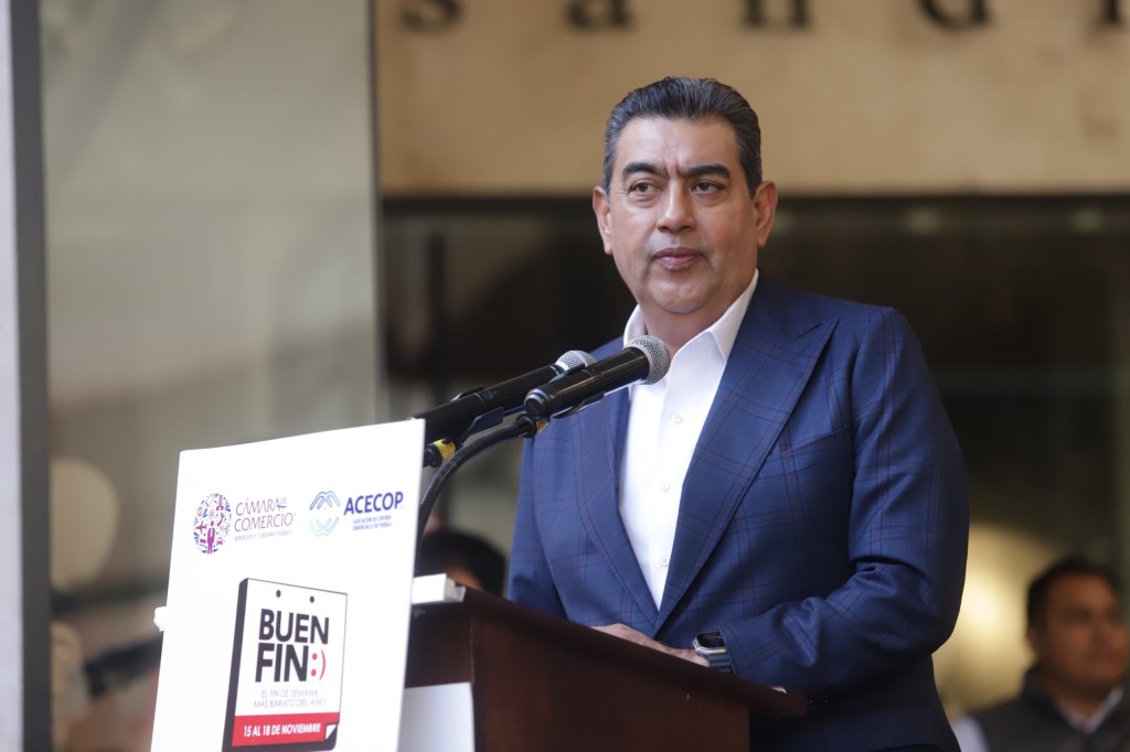 CIUDAD DE PUEBLA, Pue.- Con un llamado de realizar compras responsables, a conciencia y vivir este periodo en familia, el gobernador Sergio Salomón inauguró “El Buen Fin 2024” (a realizarse del 15 al 18 de noviembre), iniciativa que forma parte de la continuidad de la activación económica impulsada en Puebla de manera conjunta con el sector empresarial.