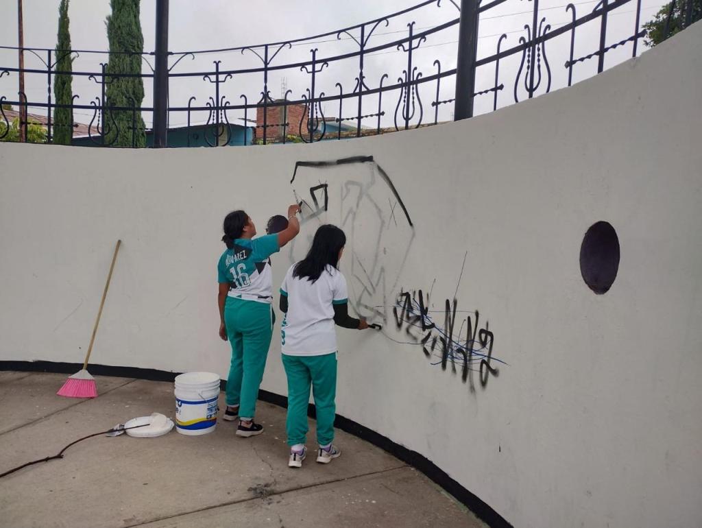 Las y los aprendientes de los 37 planteles llevaron a cabo acciones de limpieza y pintado en parques y espacios de uso común en los municipios donde la institución tiene presencia, además de sembrar árboles.
